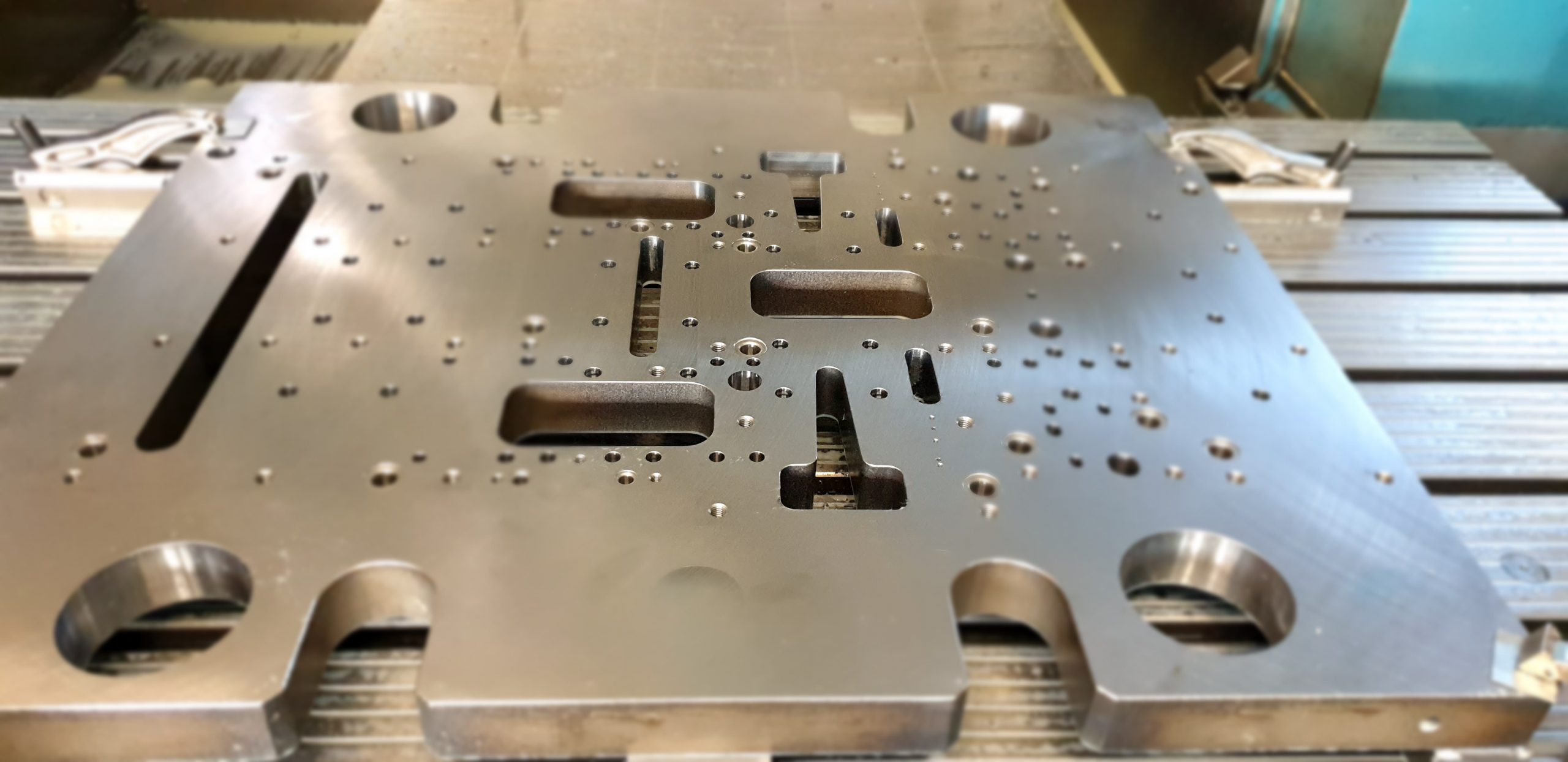 Mit unseren modernen CNC-Werkzeugmaschinen können wir kleine Werkstücke von der Größe einer 1 Cent-Münze bis hin zu Großteilen mit einem Gewicht von 3,5 Tonnen und einer Länge von ca. 4 Metern in einer Aufspannung von mehreren Seiten bearbeiten.